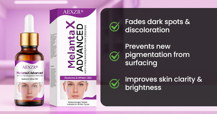 Uneven tone, stubborn pigmentation, and lingering marks don’t have to define your reflection. With AEXZR® MelantaX Advanced Anti-Hyperpigmentation Essence, your skin can return to its natural clarity and brightness — backed by science, trusted by results.